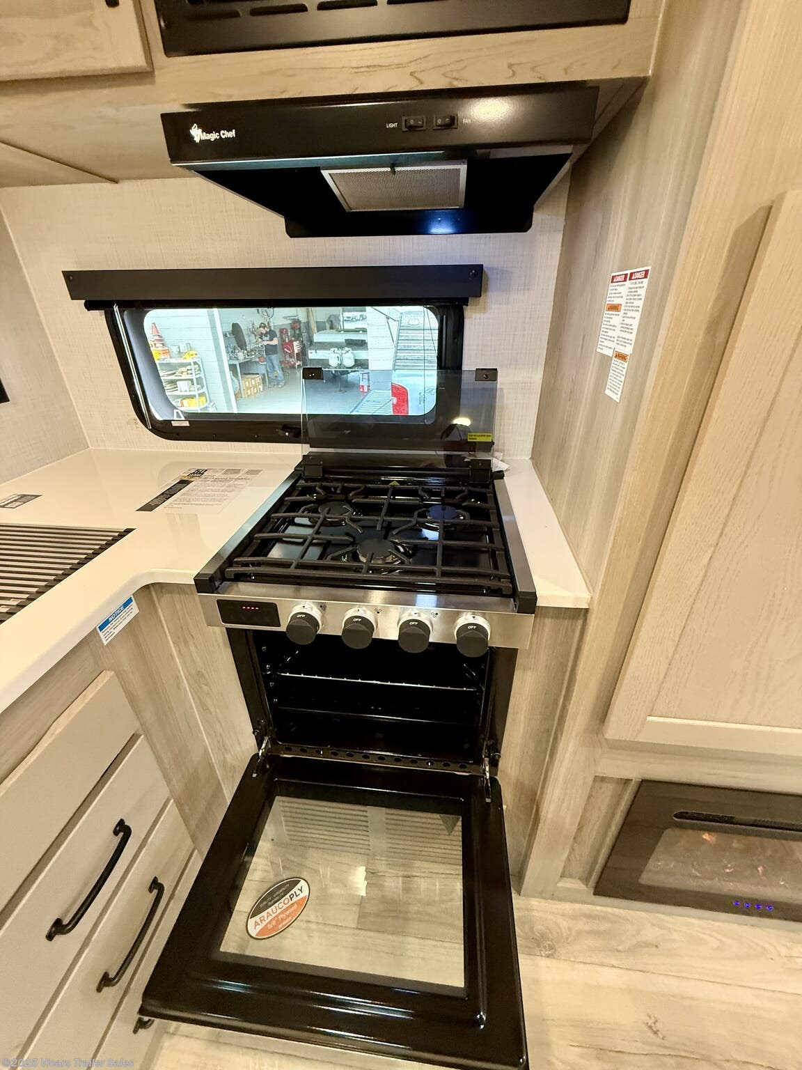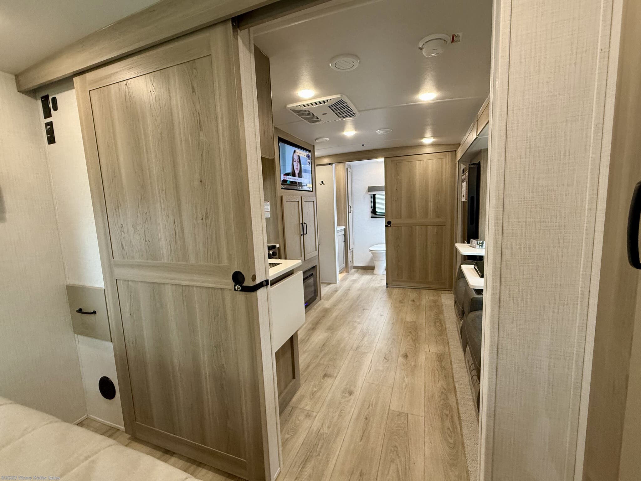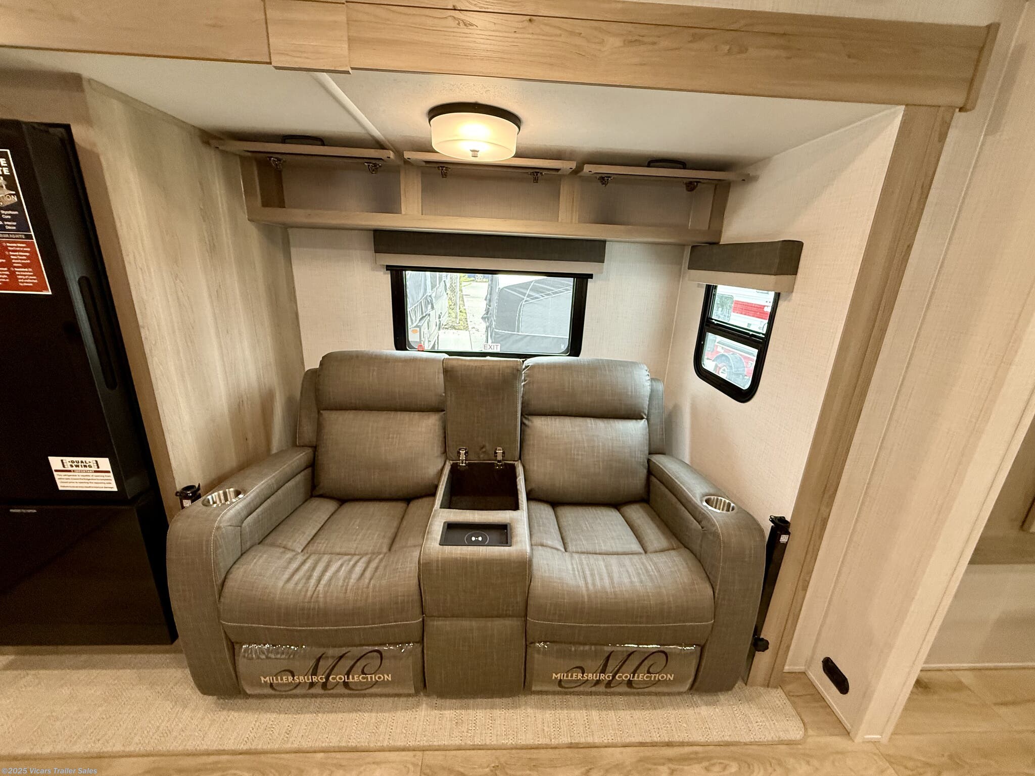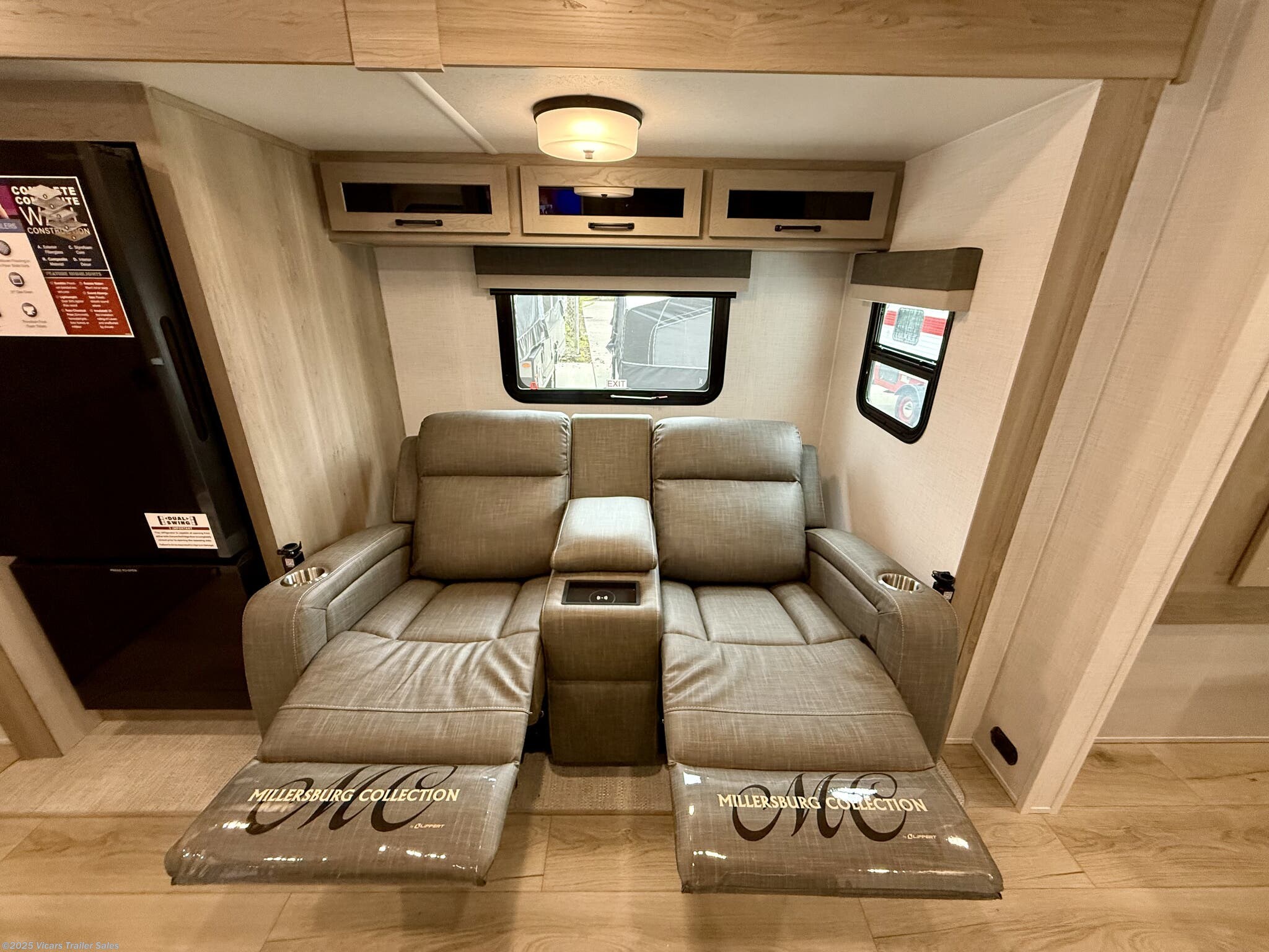 This travel trailer boasts a comprehensive list of features aimed at maximizing comfort and convenience. It is equipped with a furnace, air conditioning (15000 BTU), microwave, oven, refrigerator, and stove with a stovetop burner, ensuring you can prepare meals comfortably whether in hot or cold weather. A water heater, exterior grill, and external shower add to its outdoor living capabilities. Inside, you'll find a cozy fireplace, queen-sized bed, and ergonomic rocker recliners for ultimate relaxation. Additionally, the RV includes modern entertainment options such as a surround sound system, TV, and TV antenna.