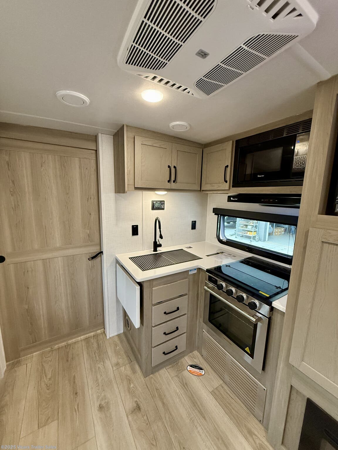 The Rockwood Mini Lite features a sturdy build with a dry weight of 5,756 pounds and a hitch weight of 697 pounds. Its dual axles ensure stability, and the spare tire kit provides peace of mind during longer trips. Safety is prioritized with CO and LP detectors, smoke detectors, fire extinguisher, and a fantastic fan for ventilation. Exterior benefits include an awning, external speakers, and roof vents for outdoor entertainment and protection from the elements.