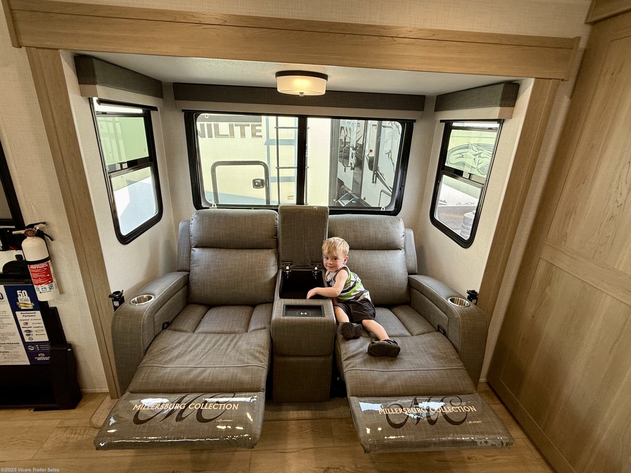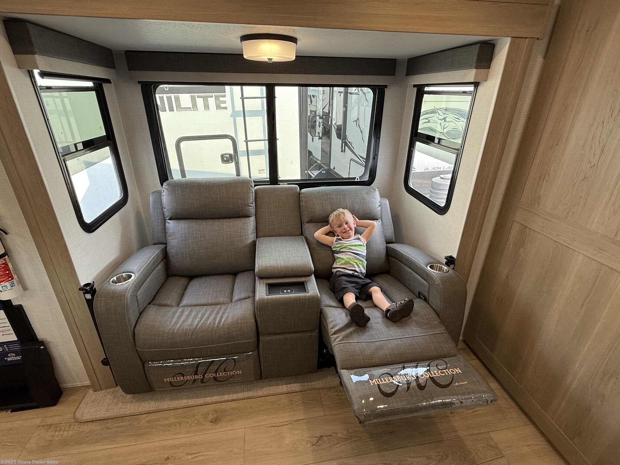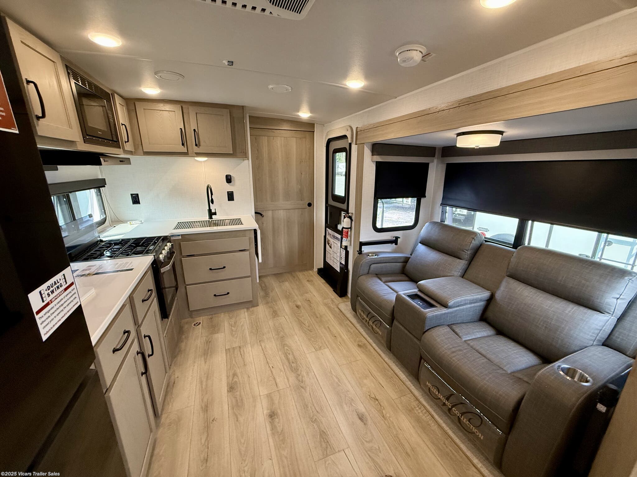 This model boasts a variety of high-end amenities, including a cozy queen bed, theater seating, and a rocker recliner for ultimate relaxation. The interior is thoughtfully designed with modern conveniences, such as: