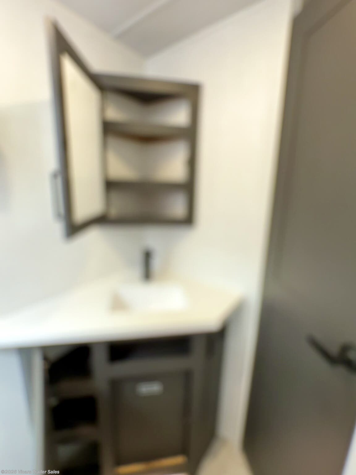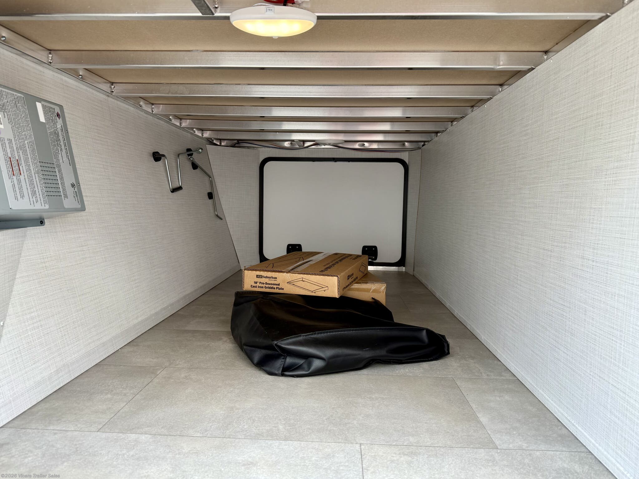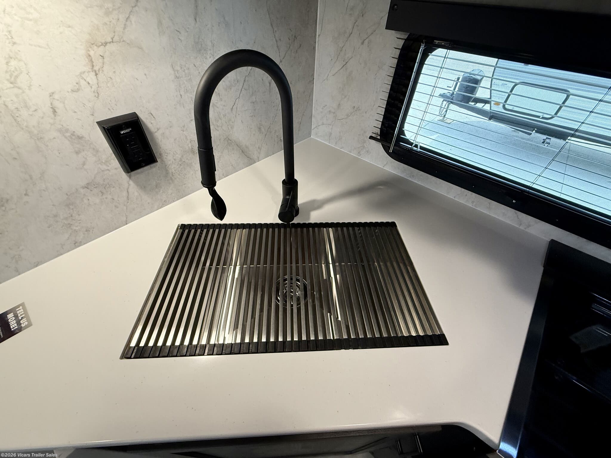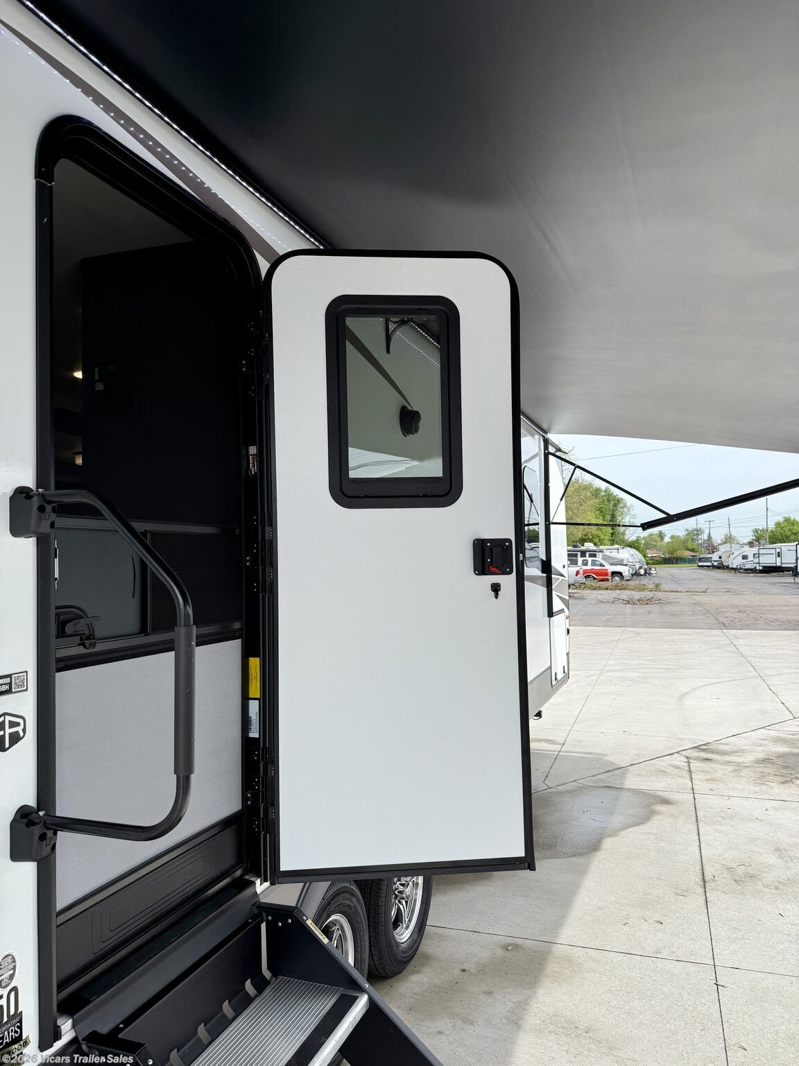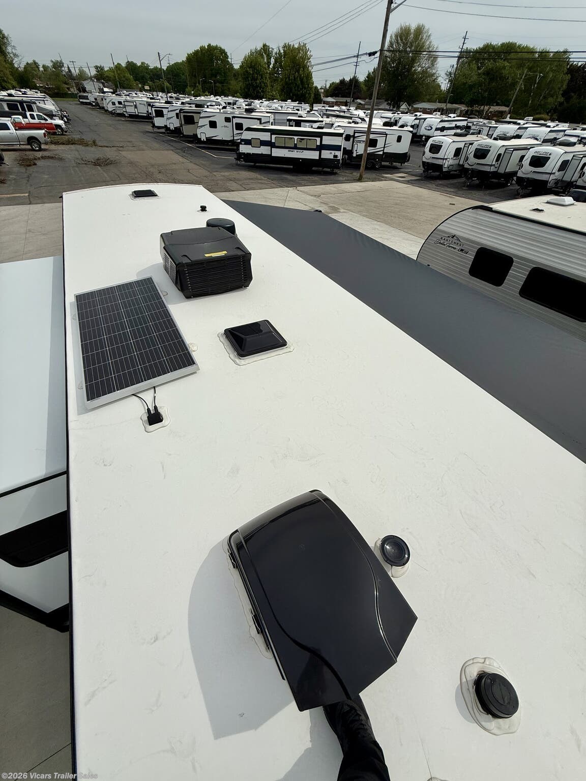 This modern travel trailer is equipped with a high-capacity 15,000 BTU air conditioner, ensuring comfort during hot days. For entertainment, it features a surround sound system, TV, and TV antenna – perfect for relaxing after a day of adventure. Skylights and roof vents bring in natural light and excellent airflow, creating a bright and airy interior atmosphere.